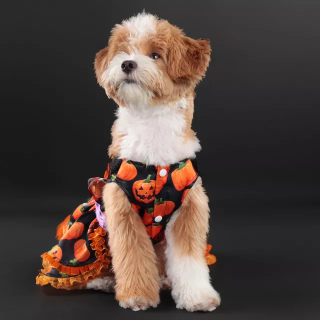 Your dog deserves to be part of the Halloween fun too! This playful pumpkin dress is more than just a costume – it’s a celebration of the season and your pet’s personality. Whether your pup is greeting trick-or-treaters or tagging along to a Halloween bash, this outfit ensures they’ll be the cutest creature in the crowd.